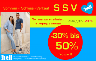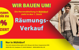 🎉 Wir bauen um - Sie profitieren 🎉 Unsere Herrenabteilung in Mühldorf zieht in den 1. Stock – machen Sie jetzt ein Schnäppchen, damit wir Platz für den Umbau haben. Im ganzen Haus findet ein großer Räumungsverkauf statt! Entdecken Sie jetzt Ihre Lieblingsstücke zu sensationellen Preisen:👔 30 - 50% Rabatt auf hunderte Artikel!🛍️ 20% Rabatt an der Kasse auf nicht reduzierte Ware! (Ausgenommen ist NOS-Ware.) Kommen Sie vorbei, stöbern Sie durch unser Geschäft und sichern Sie sich Ihre neuen Lieblingsoutfits zu unschlagbaren Preisen!